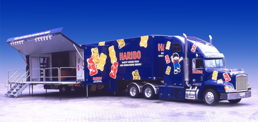 Der Haribo-Truck geht wieder auf Tour. Vom 16. April bis 03. Oktober 2015 wird er an 124 Einsatztagen bei großen Verbrauchermärkten und SB-Warenhäusern Halt machen.