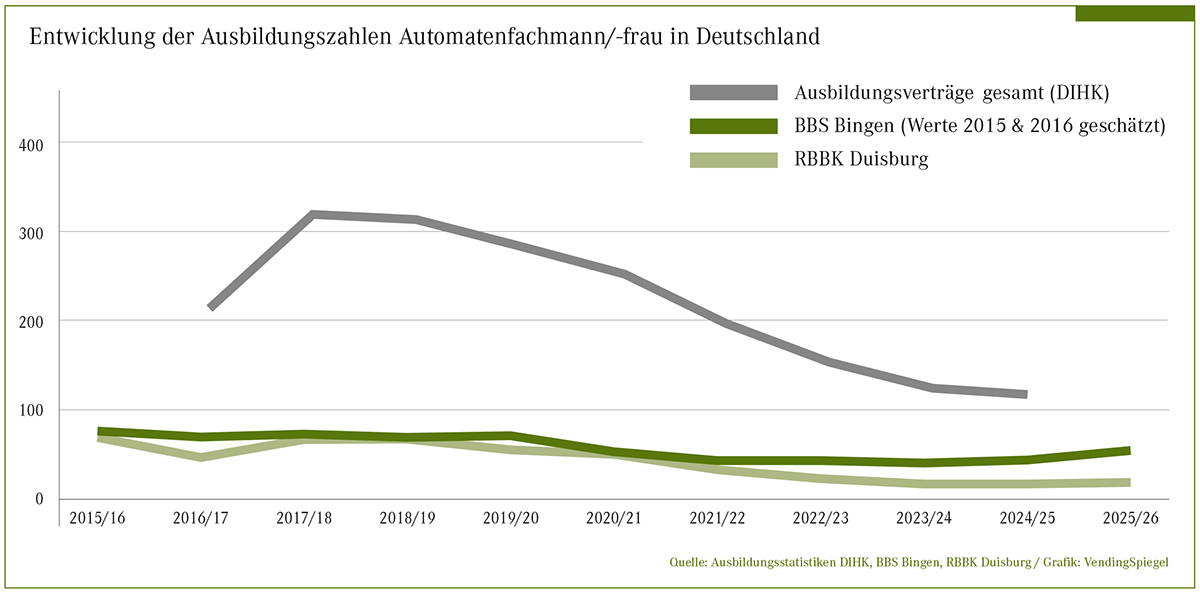 Quelle: Ausbildungsstatistiken DIHK, BBS Bingen, RBBK Duisburg / Grafik: VendingSpiegel